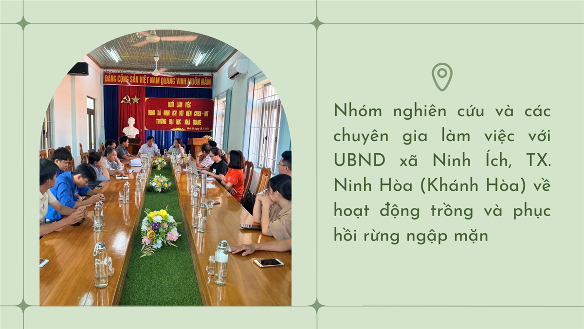 Nhóm nghiên cứu thuộc dự án “Quản lý và phục hồi rừng ngập mặn Bắc Khánh Hòa – Hướng tới cảnh quan bền vững”.