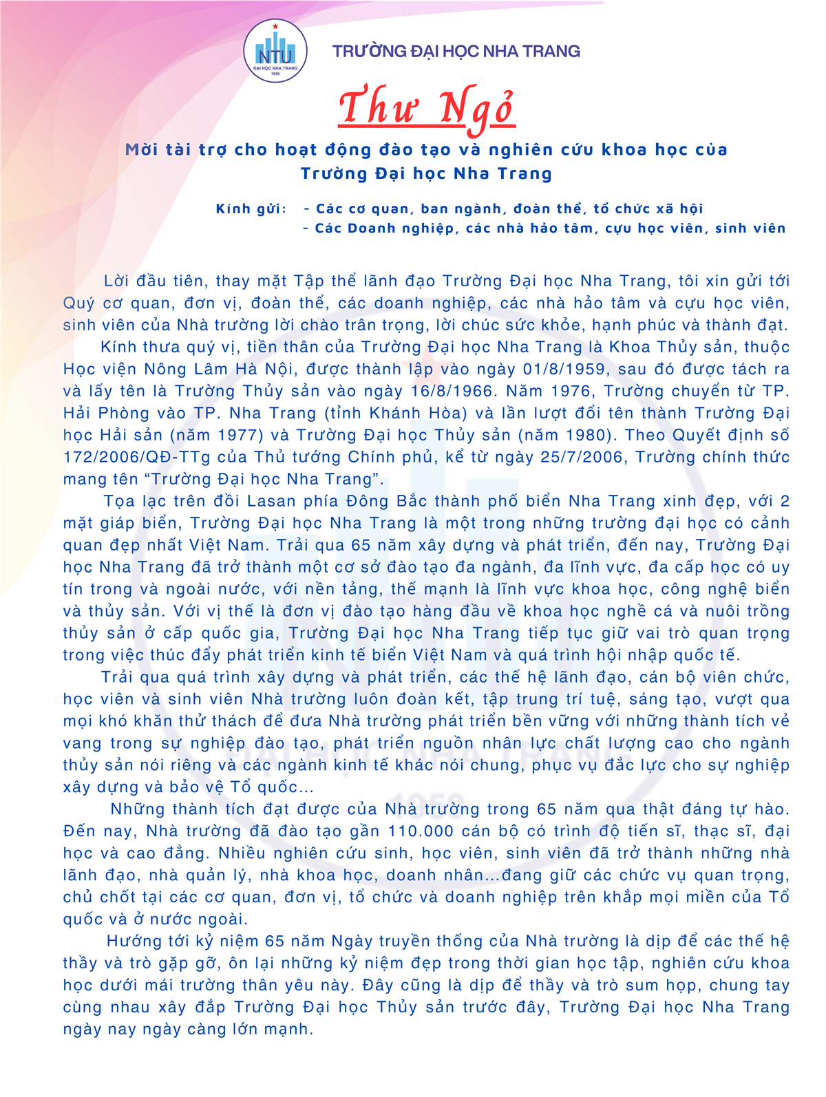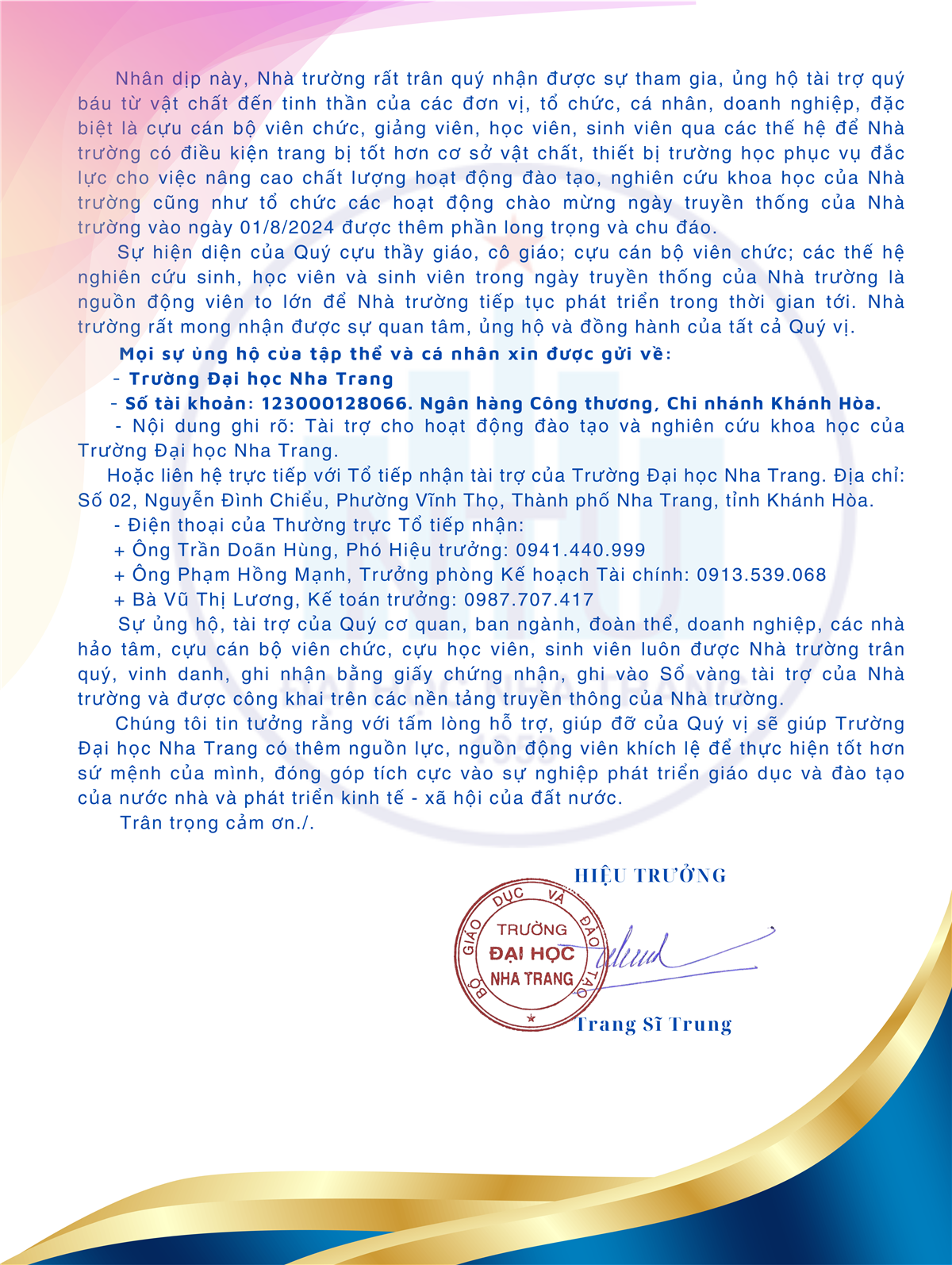 Mời tài trợ cho các hoạt động ĐT&NCKH